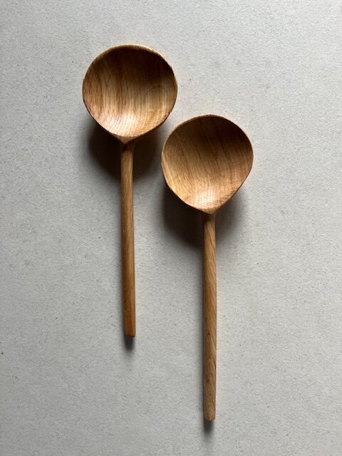 Cuillères en chêne à salade, fabrication artisanale . Longueur 29 cm
