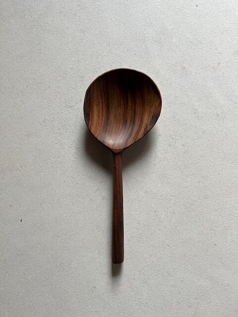 Cuillère à "ri" en noyer, fabrication artisanale . Diamètre 10 cm. hauteur 25,5 cm.