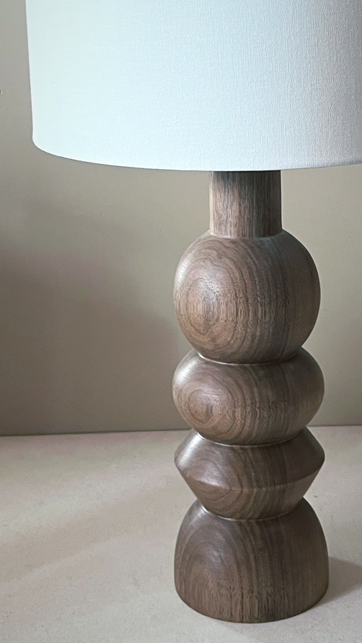Lampe en noyer, fabrication artisanale. Diamètre 12 cm. hauteur 35 cm.