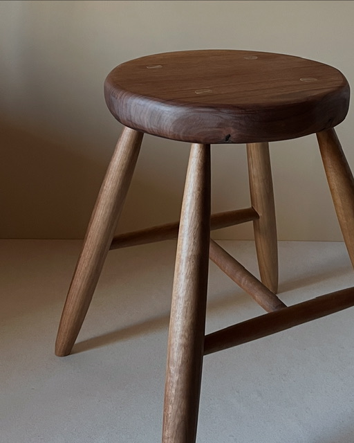 Tabouret en noyer. Fabrication artisanale. Pour les commandes de tabouret un délai de 10 à 15 jours de fabrication sera nécessaire. Notez que la teinte du noyer pourra varier en fonction des stocks.
