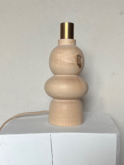 Lampe en frêne, fabrication artisanale . Diamètre 11,5 cm. hauteur 28 cm.