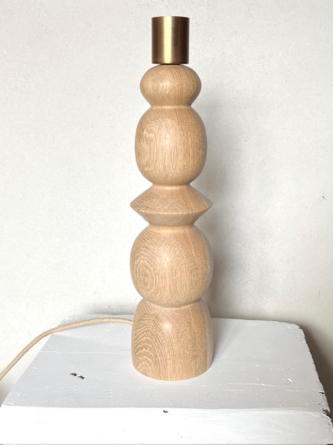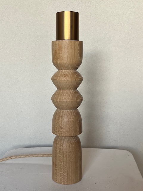 Lampe en chêne, fabrication artisanale . Diamètre 11 cm. hauteur 40 cm.