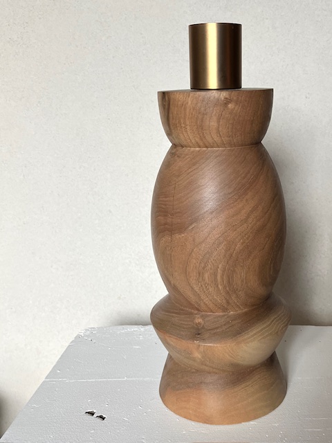 Lampe en noyer, fabrication artisanale. Diamètre 10 cm. hauteur 24,5 cm.