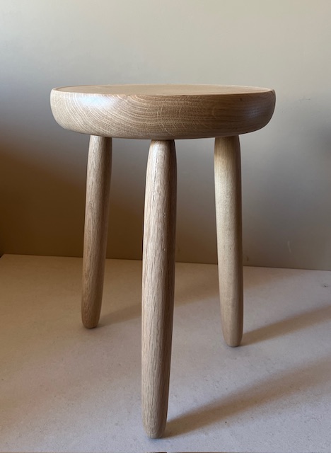 Tabouret en Chêne 3 pieds. Fabrication artisanale. Pour les commandes de tabouret un délai de 10 à 15 jours de fabrication sera nécessaire. Notez que la teinte du chêne pourra varier légèrement en fonction des stocks.
