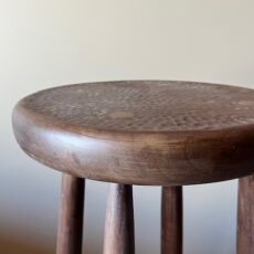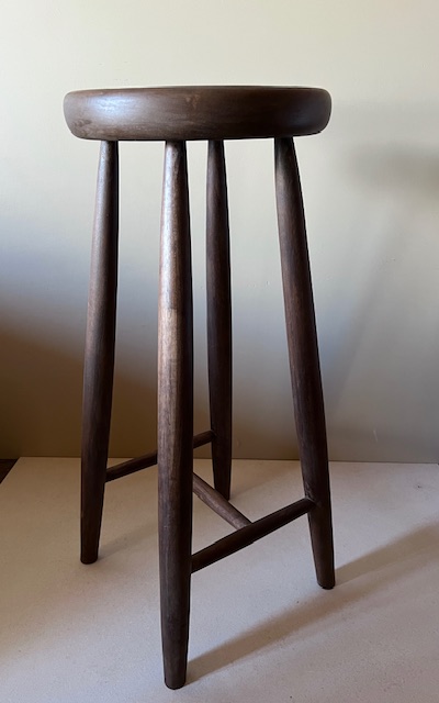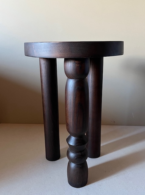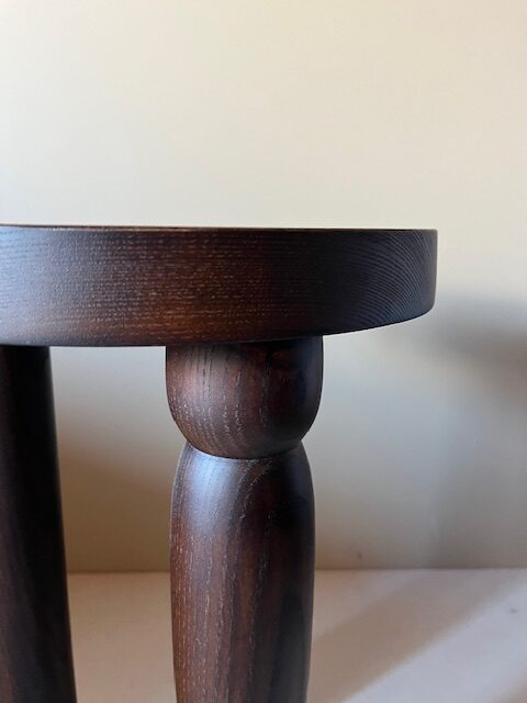 Tabouret en frêne teinté 3 pieds. Fabrication artisanale. Pour les commandes de tabouret un délai de 10 à 15 jours de fabrication sera nécessaire. Notez que la teinte du noyer pourra varier en fonction des stocks.